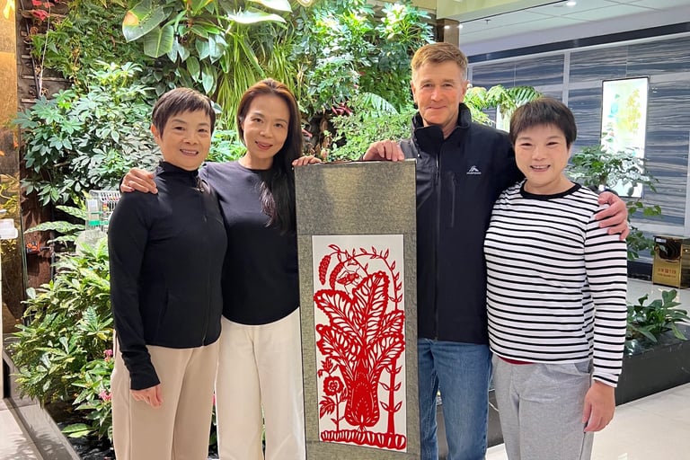 By permission of the author Feng Li Yun (far right in the photo) : Transcript of a letter from Georgia's childhood friend , accompanying a most generous gift of four pieces of Chinese Paper-Cut Art. Written in the classical style and translated into English by Georgia's husband Michael.